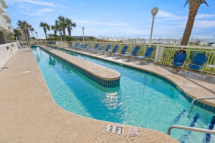 Outside, discover a serene oceanfront world that radiates charm and class. Your family will be one with nature when you see that the backyard playground is a wide, sandy beach separated from the oceanfront swimming pool of this spectacular North Myrtle Beach vacation destination by only a healthy dune line and waving sea oats. There is even a kiddie pool and a lazy river at Crescent Shores. Two hot tubs are situated near the oceanfront swimming pool, making the oceanfront sundeck an attraction at any time of day or night. Pull up a lounge chair and relax with a pile of magazines, or follow the beach access to the edge of the Atlantic Ocean and let the saltwater lap at your toes.