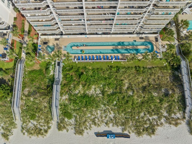 Outside, discover a serene oceanfront world that radiates charm and class. Your family will be one with nature when you see that the backyard playground is a wide, sandy beach separated from the oceanfront swimming pool of this spectacular North Myrtle Beach vacation destination by only a healthy dune line and waving sea oats. There is even a kiddie pool and a lazy river at Crescent Shores. Two hot tubs are situated near the oceanfront swimming pool, making the oceanfront sundeck an attraction at any time of day or night. Pull up a lounge chair and relax with a pile of magazines, or follow the beach access to the edge of the Atlantic Ocean and let the saltwater lap at your toes.